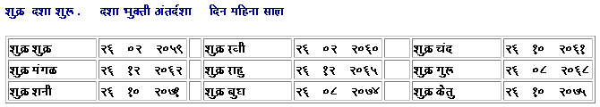 Sample: 2 Level HTML KP Vimshottari Dashas Devnagari Report Birth Date & Time: 11 Sep 1962 6:25:00 AM Thane (Near Mumbai), India