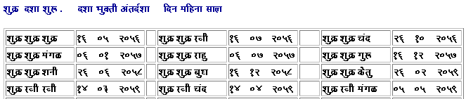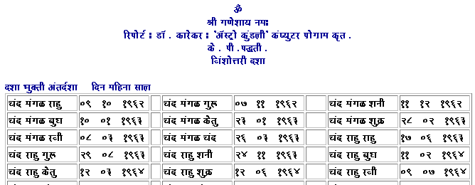 Sample: 3 Level HTML KP Vimshottari Dashas Devnagari Report Birth Date & Time: 11 Sep 1962 6:25:00 AM Thane (Near Mumbai), India