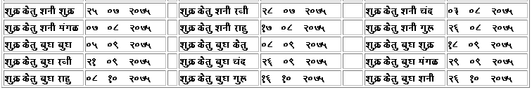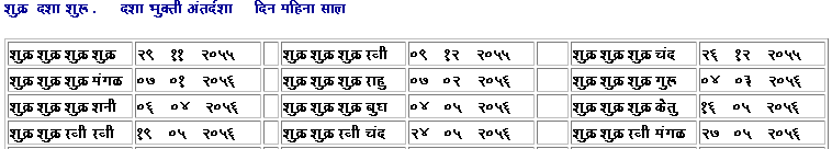 Sample: 4 Level HTML KP Vimshottari Dashas Devnagari Report Birth Date & Time: 11 Sep 1962 6:25:00 AM Thane (Near Mumbai), India