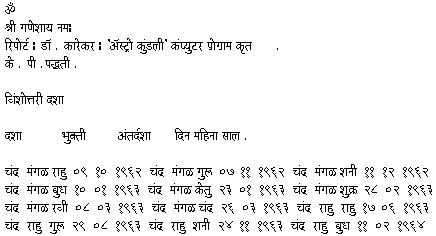 Sample: 3 Level TEXT KP Vimshottari Dashas Devnagari Report Birth Date & Time: 11 Sep 1962 6:25:00 AM Thane (Near Mumbai), India