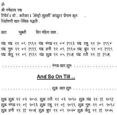 Sample: 2 Level TEXT Vedic Vimshottari Dashas Devnagari Report Birth Date & Time: 11 Sep 1962 6:25:00 AM Thane (Near Mumbai), India