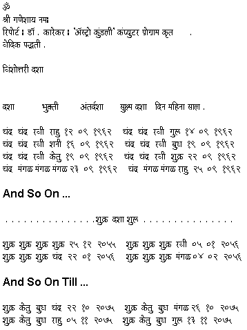 Sample: 4 Level TEXT Vedic Vimshottari Dashas Devnagari Report Birth Date & Time: 11 Sep 1962 6:25:00 AM Thane (Near Mumbai), India