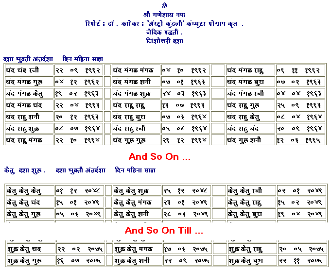 Sample: 3 Level HTML Vedic Vimshottari Dashas Devnagari Report Birth Date & Time: 11 Sep 1962 6:25:00 AM Thane (Near Mumbai), India