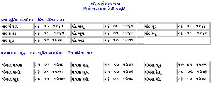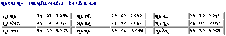 Sample: 2 Level HTML KP Vimshottari Dashas Gujarati Report Birth Date & Time: 11 Sep 1962 6:25:00 AM Thane (Near Mumbai), India
