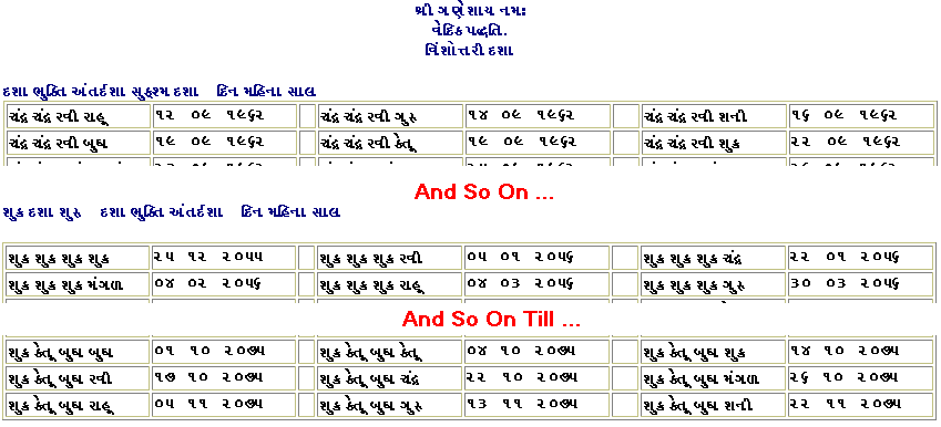 Sample: 4 Level HTML Vedic Vimshottari Dashas Gujarati Report Birth Date & Time: 11 Sep 1962 6:25:00 AM Thane (Near Mumbai), India