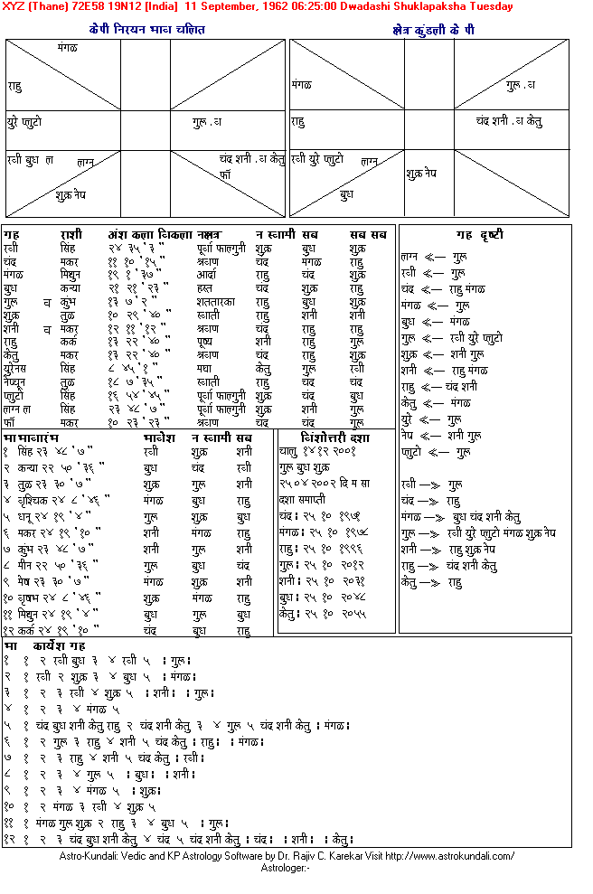 Sample Birth Charts East Indian: Devnagari (Hindi / Marathi): KP