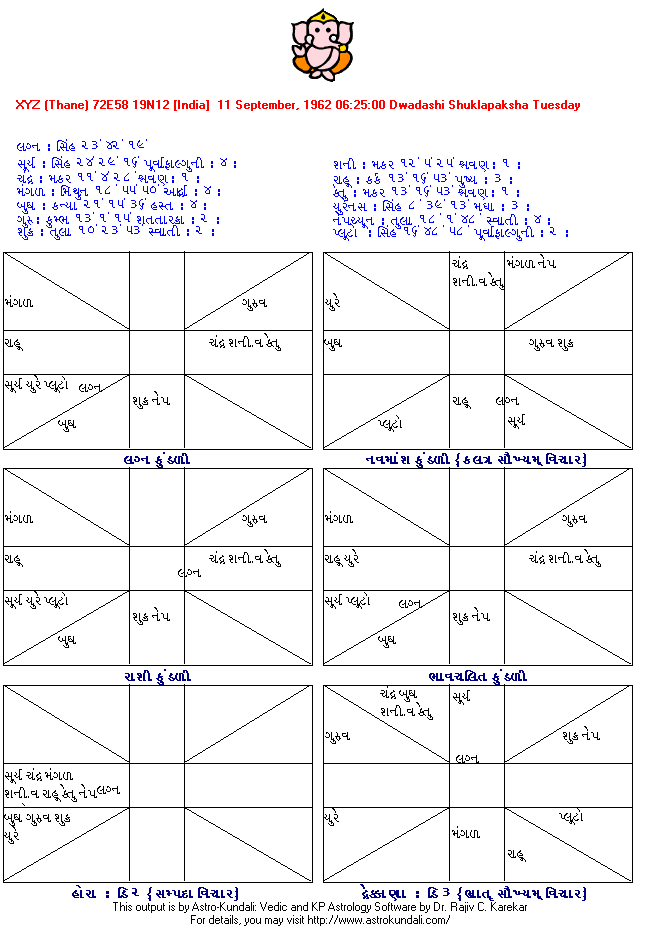 Sample Birth Charts: Gujarati East Indian Style